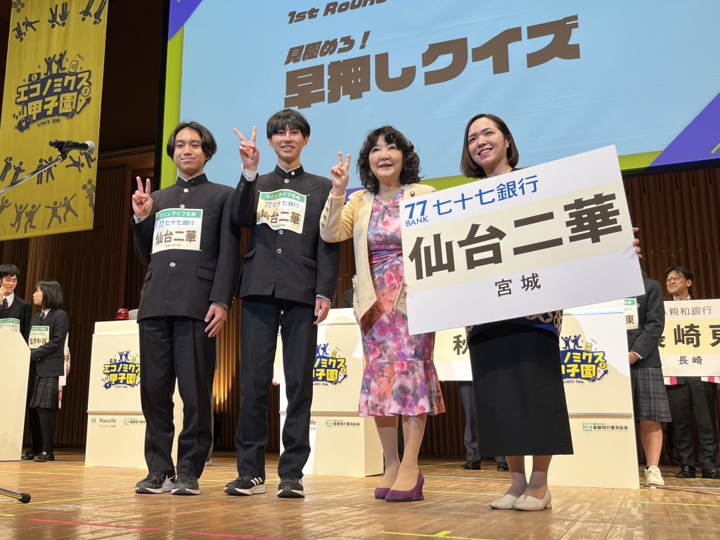 2月22日に「第20回全国高校生金融経済クイズ選手権 エコノミクス甲子園 マニュライフ生命カップ 全国大会」が無事終了し、神奈川大会代表の浅野高等学校が初の全国優勝となりました。優勝した2人にはニューヨーク研修旅行が贈呈されました。